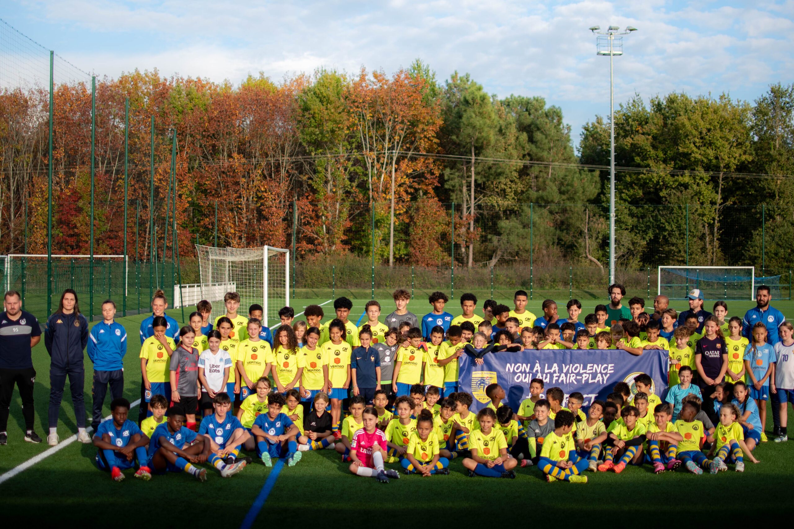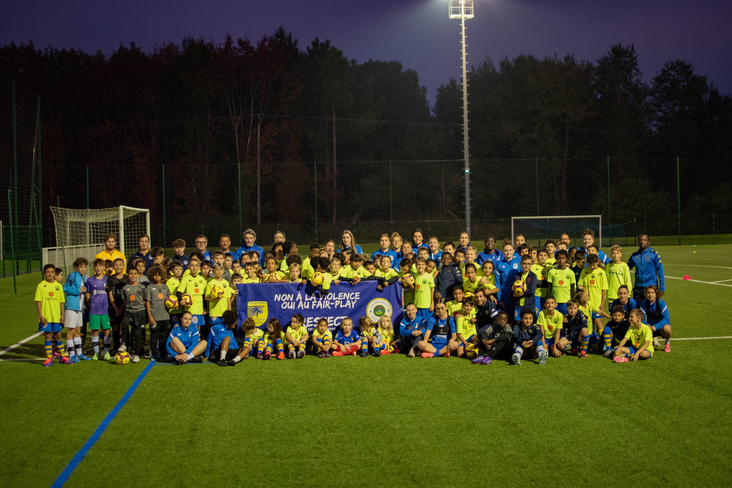 En soutien à l’US Colomiers et aux 2 éducateurs agressés le MFCTG a organisé, ce mercredi 7 novembre, une séance de photos de groupes symboliques afin de rappeler que le football n’est qu’un jeu et que le fairplay doit primer.