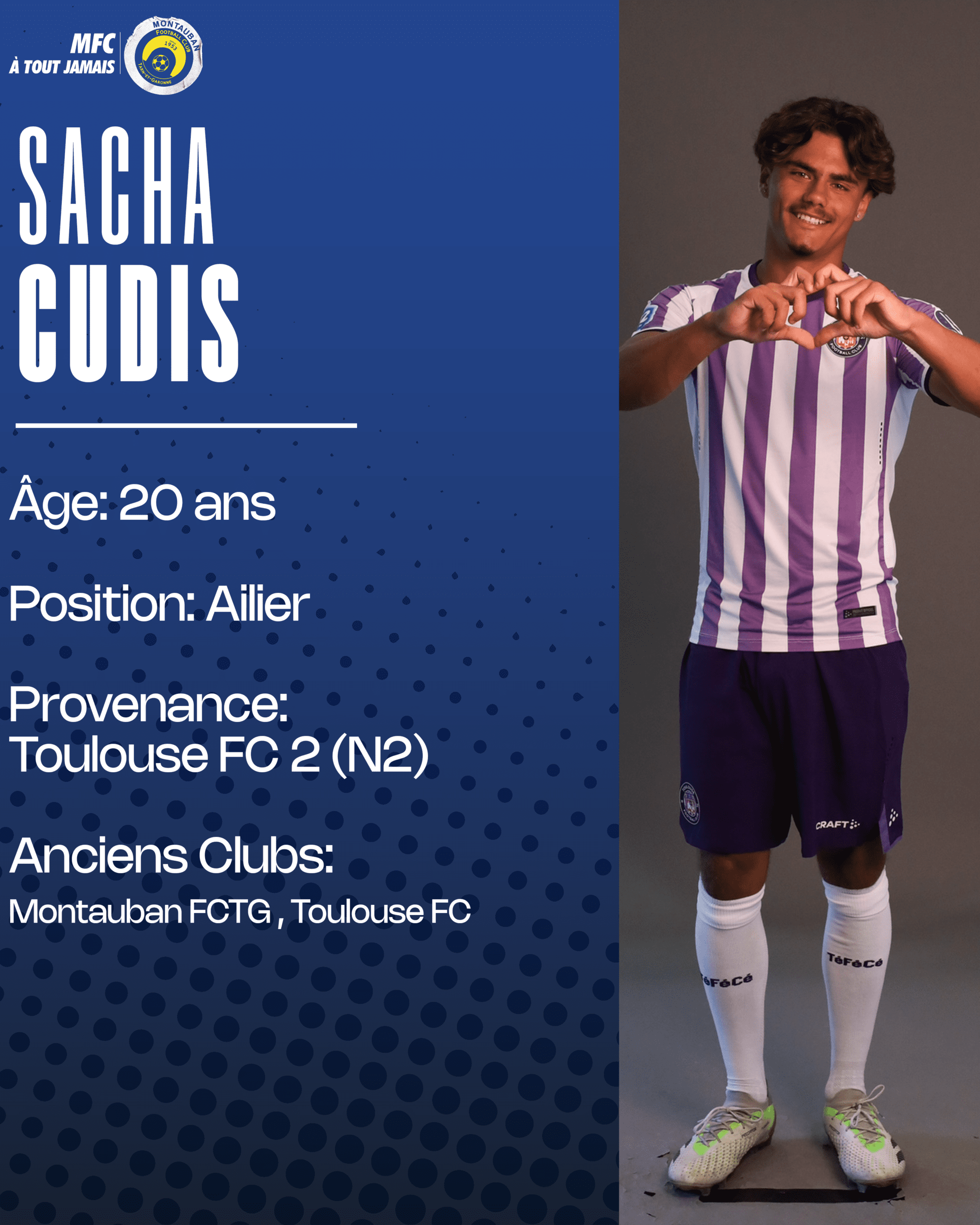 C’est un ancien de la maison qui fait son retour au MFCTG ! Formé au MFCTG, l’ailier avait rejoint le centre de formation du Toulouse FC à 15 ans et est passé par les catégories jeunes des Violets en U19 National notamment. Il débarque en provenance du Toulouse FC où il évoluait la saison dernière au sein du groupe de National 2.