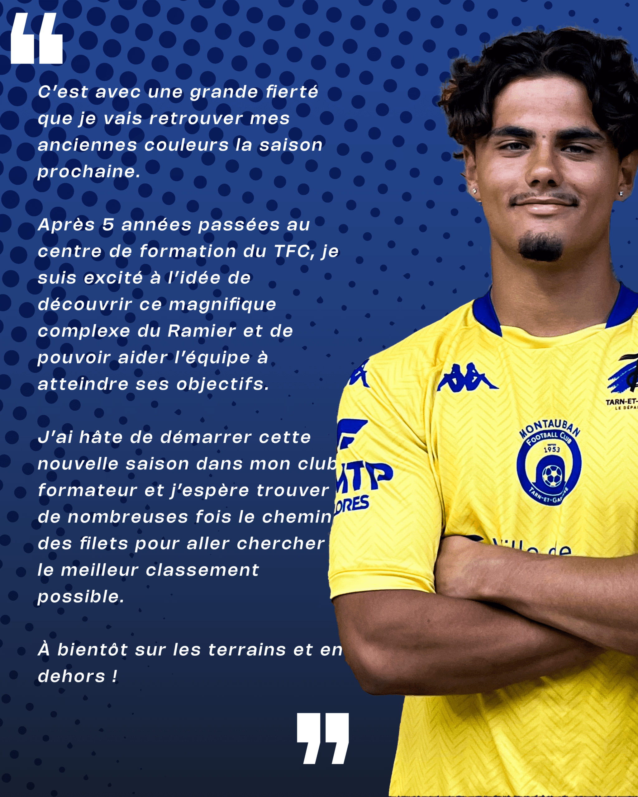Après 5 années passées au centre de formation du TFC, je suis excité à l’idée de découvrir ce magnifique complexe du Ramier et de pouvoir aider l’équipe à atteindre ses objectifs.