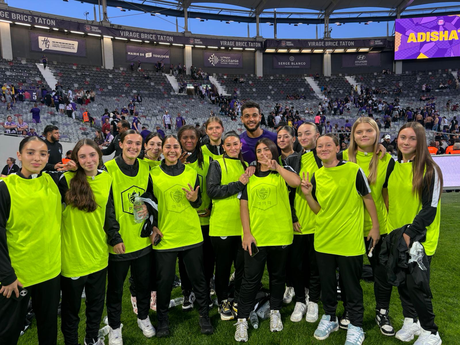- Enfin, nos U18F2 ont été ramasseuses de balle de ce match de Ligue 1 et ont eu la chance, à la fin du match, d’avoir la photo souvenir avec l’unique buteur de cette rencontre côté toulousain, l’attaquant novégien Joshua KING !