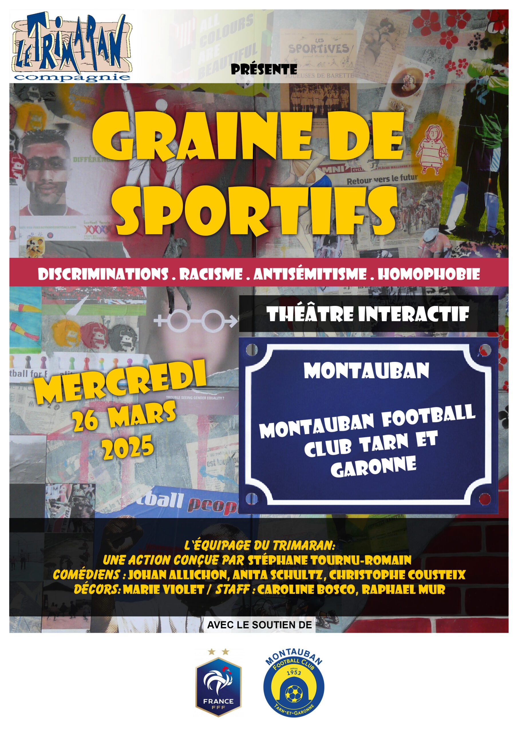 Ce mercredi 26 mars, le Montauban Football Club Tarn-et-Garonne accueillera un événement original et engagé à Jean Verbeke. De 15h15 à 17h15, un spectacle interactif intitulé « Graine de Sportifs » sera présenté à une quarantaine de jeunes joueurs du club. Cet événement, organisé sous l’impulsion de la Fédération Française de Football et mis en place localement par le District de Football du Tarn-et-Garonne, s’inscrit dans le cadre du programme de lutte contre les incivilités dans le sport.